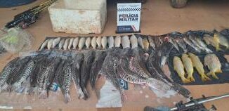 A Polícia Militar do 17º Batalhão apreendeu, nesta sexta-feira (13), 48 unidades de pescado irregular e prendeu dois homens por cri