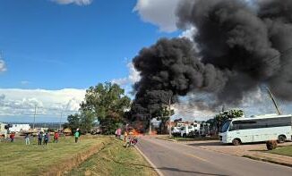 Um ônibus foi atingido por um incêndio na tarde desta segunda-feira (13), na região do Parque Universitário, nas proximidade