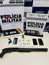 Uma ação da Polícia Militar resultou na apreensão de arma de fogo, drogas e na detenção de suspeitos, sendo