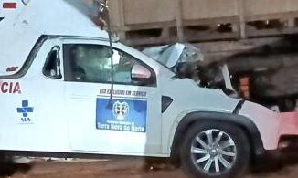 Uma mulher e dois homens ficaram feridos em um acidente envolvendo um caminhão e uma ambulância da Prefeitura de Terra Nova do Norte, na