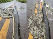 Uma sucuri de aproximadamente três metros foi atropelada e morta na MT-338, em Porto do Gaúchos (a 650 km de Cuiabá). Vídeo