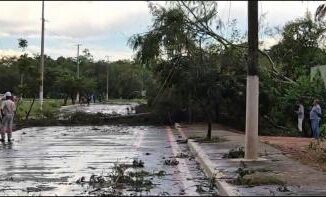 A tempestade que atingiu a região metropolitana de Cuiabá, na tarde desta sexta-feira (24), deixou danos em vários locais. Segund