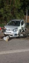 Uma mulher de 31 anos, que não teve seu nome divulgado, ficou presa às ferragens após capotar o veículo ao desviar de um g
