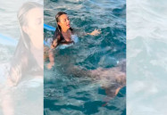 Emilly Vasconcelos nadava com peixes em uma área de Fernando de Noronha quando foi surpreendida pela companhia de um tubar&