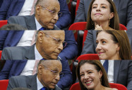 Júlio Campos (União) e Flávia Moretti (PL) aproveitaram a solenidade de posse no MPE do novo procurador-geral de J