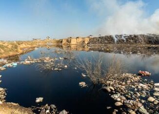 Um caminhão foi flagrado descartando entulhos em uma área de preservação, próximo a uma lagoa no bairro do Carrapic