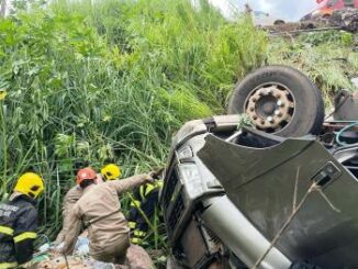 Um homem, que não teve seu nome divulgado, ficou preso às ferragens após tombar a carreta que conduzia, na tarde dessa segunda-fe