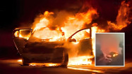 Um veículo de modelo Renault Kwid pegou fogo na noite desta sexta-feira (21) e foi destruído pelas chamas na avenida na Avenida Juliano