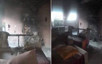 Um apartamento foi destruído pelo incêndio causado por um curto-circuito no ar-condicionado, a manhã desta terça-feira (18)