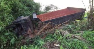 Um caminhoneiro, que não teve o nome revelado, ficou ferido ao se envolver em um grave acidente no km 813, da BR-163, em Sinop (500 km ao norte