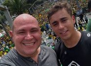 Abilio Brunini e deputado federal Nikolas Ferreira durante protesto em Copacabana