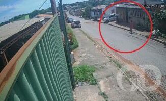 Câmera de segurança instalada na rua 18 do bairro Jardim Florianópolis, em Cuiabá, registrou momento em que Emelly Azevedo