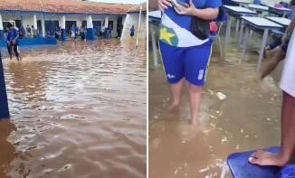 A Escola Estadual Frei Ambrósio em Cáceres (225 km a Oeste) ficou totalmente alagada após os temporais registrados no munic&iacut