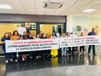 Profissionais de saúde de Chapada dos Guimarães (67 km ao Norte) se deslocaram até o Tribunal de Contas do Estado de Mato Grosso