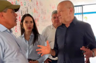 Acompanhado de Janaina, Pivetta (à dir.) conversa com os prefeitos Adilson (Barra) e Adelcino (Pontal do Araguaia)