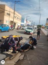 Um motociclista venezuelano, 34, ficou ferido ao se envolver em um acidente com uma Fiorino, na tarde desta quinta-feira (27), próximo da aveni