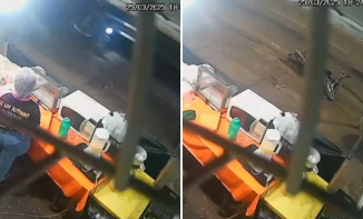 Imagens de câmera de segurança registraram o momento em que Hélio Lopes da Costa, 60 anos, trafegava ao lado direito de um caminh&