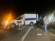 Uma grave colisão entre uma carreta Iveco Stralis e um ônibus de transporte de passageiros deixou um homem e um homem de 50 anos ferido e