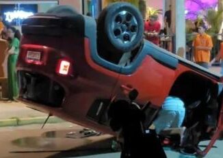 Jeep perde o controle e capota no centro de Chapada; vídeo