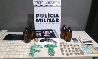Três homens foram presos por tráfico de drogas e porte ilegal de arma no bairro São Mateus, em Cuiabá, durante a noite de t