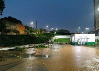 O forte temporal que atingiu Cuiabá nesta terça-feira (8), dia em que a capital mato-grossense completou 306 anos, provocou alagamentos