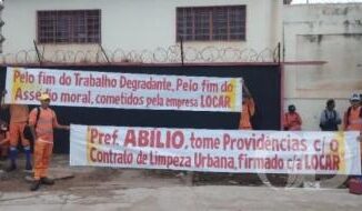 Trabalhadores terceirizados da Locar, empresa responsável por serviços operacionais da Empresa Cuiabana de Limpeza Urbana (Limpurb), rea