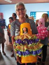 Tecidos floridos e bem coloridos, bonecas e telhas de cerâmica são a matéria-prima para uma renda extra na família ou para
