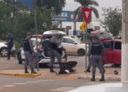 Um grupo de policiais militares foi flagrado agredindo um homem com chutes e golpes de barra de ferro na manhã desta quarta-feira (2), em Prima