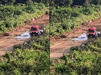 Uma ambulância atolou na Estrada do Engordador, também conhecida como Carrapicho, em Várzea Grande, a poucos metros da Ponte Sarit