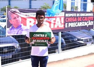 Servidores da educação realizaram uma paralisação em frente à sede da Secretaria de Estado de Educaçã