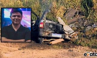 Câmera de segurança registrou a colisão frontal entre um Fiat Strada e um veículo de carga, que ocasionou a morte do jovem