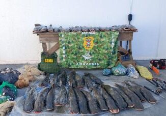 Uma mulher foi multada em R$ 31,5 mil após ser pega com 235 quilos de pescado em Barão de Melgaço (113 km ao Sul) na noite dessa