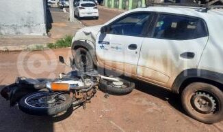 Uma mulher grávida e um homem ficaram feridos em um acidente envolvendo uma motocicleta e um Renaut Kwid, na tarde de segunda-feira (12), em Ro
