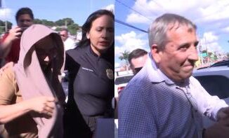O casal Julinere Goulart Bastos e César Jorge Sechi, apontados como os mandantes do assassinato do advogado Renato Nery, 72, chegaram no c