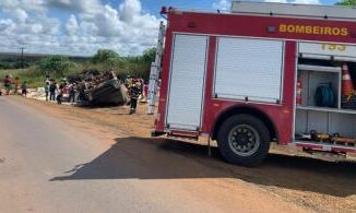 Um homem, ainda não identificado, morreu após tombar o caminhão que conduzia na manhã de sábado (3), na BR-070, em