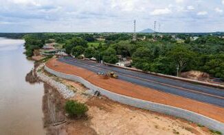 A placa que anuncia a construção da obra da Orla de Santo Antônio do Leverger (34 km ao Sul de Cuiabá) apresenta um prazo d