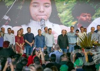O presidente da República, Lula (PT), foi recebido neste sábado (24), pela militância do PT com gritos de “Sem Anistia”, durante c