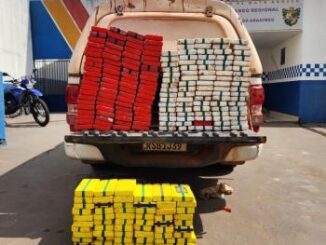 As forças de segurança apreenderam 227 tabletes de cloridrato de cocaína que eram transportados em uma caminhonete S10, nesta sex