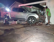 O condutor de um veículo GM S10 perdeu o controle da direção e se chocou contra o muro de uma residência na rua José