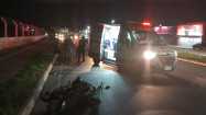 Um motociclista, que não foi identificado, de 42 anos, colidiu contra um ciclista enquanto ambos seguiam no sentido rotatória do Zero km