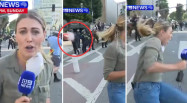 A repórter australiana Lauren Tomasi foi atingida por uma bala de borracha disparada intencionalmente por um policial de Los Angeles enquanto c