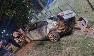 Um acidente de trânsito foi registrado na noite desta quinta-feira (5), após um adolescente pegar escondido o carro do irmão e col