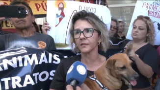 Defensores da causa animal protestaram, na manhã desta quinta-feira (5), em frente a Prefeitura de Cuiabá, para que o atual prefeito, Ab