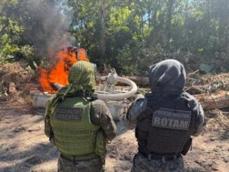 Durante ações da Operação Flora Hotspot 2025, a Polícia Militar Ambiental flagrou uma área de exploraç
