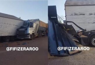 Um homem ficou ferido em uma batida envolvendo 3 carretas na manhã desta quarta-feira (23), na BR-364, em Rondonópolis (212 km ao sul de