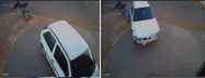 Um motorista, ainda não identificado, invadiu a preferencial em um cruzamento, atropelou dois homens que estavam em uma motocicleta e fugiu no