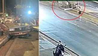 Imagens de uma câmera de segurança mostram o momento em que um Gol, envolvido em racha na Miguel Sutil, bate contra o poste de energia e