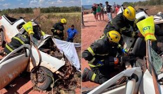 Batida entre Strada e ônibus deixa um morto e outro ferido na MT-473