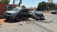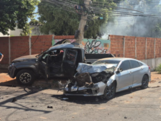 Uma colisão entre um veículo Amarok e um Honda Civic na manhã deste domingo (17), no bairro Quilombo, em Cuiabá, deixou ao