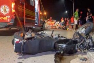 Duas pessoas ficaram feridas, entre elas uma mulher que teve a perna decepada em um acidente entre um Fiat Palio e uma motocicleta na noite desse s&aa